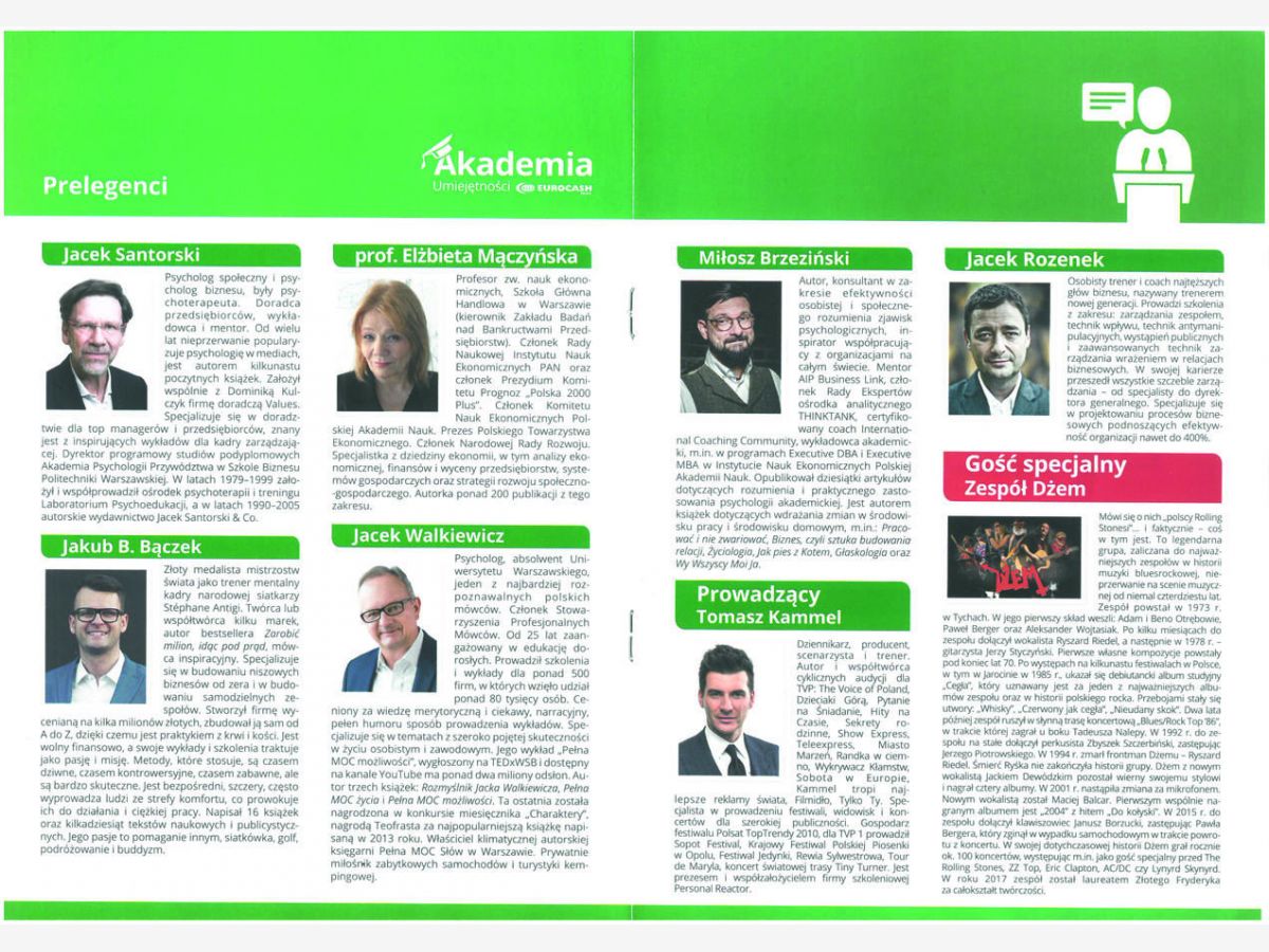 Jakub B. Bączek „Dobre życie – pozytywne nastawienie, obszary wpływu, odwaga do zmian”; Jacek Walkiewicz „Pełna moc możliwości”; Miłosz Brzeziński „Co zrobić, żeby czas nam sprzyjał?”; Jacek Rozenek „Zarządzaj z pasją – efektywna motywacja zespołu”