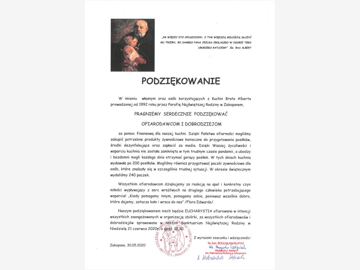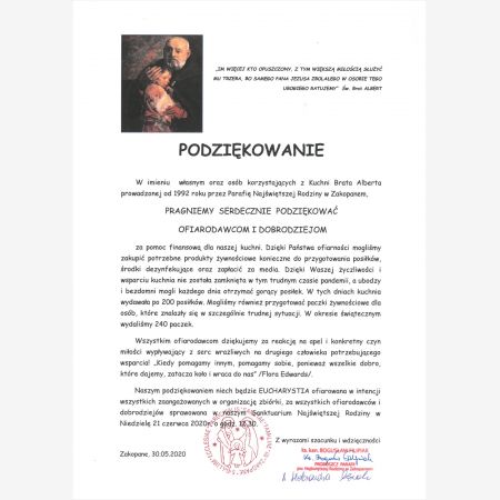 Dziękujemy za ciepłe słowa od pracowników Kuchni Św.Brata Alberta w Zakopanem.