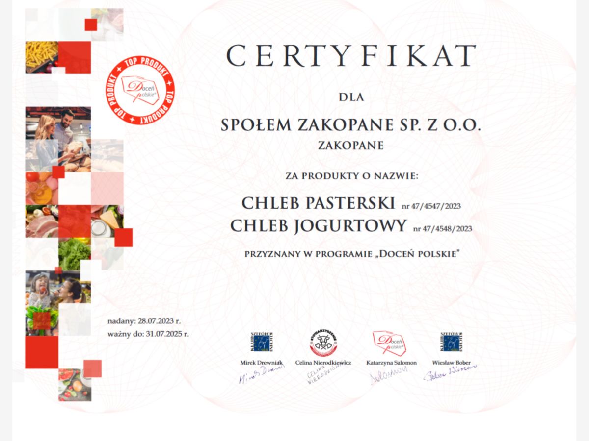 Chleb Pasterski i Chleb Jogurtowy laureatami programu promocyjnego Doceń Polskie.