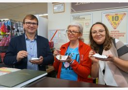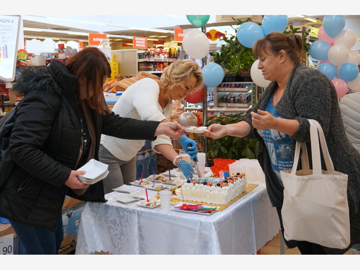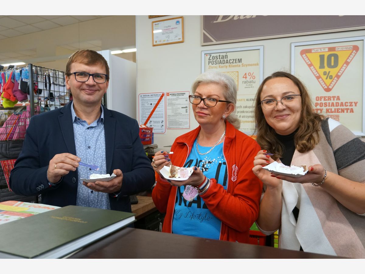Dokładnie o 12:00, w samo południe, częstowaliśmy tortem, a od samego rana witaliśmy promocjami w Szymonku.