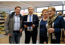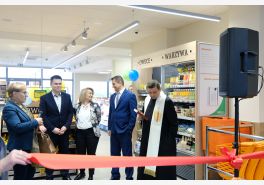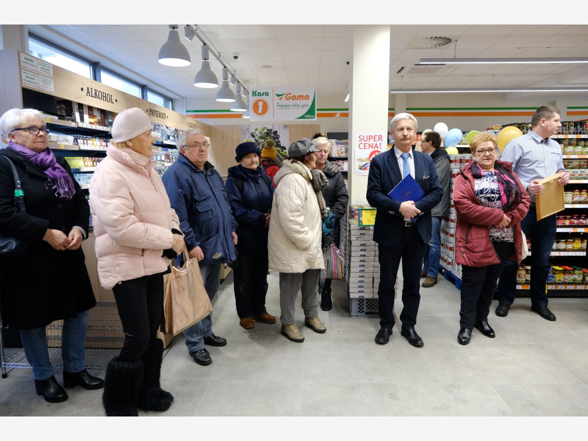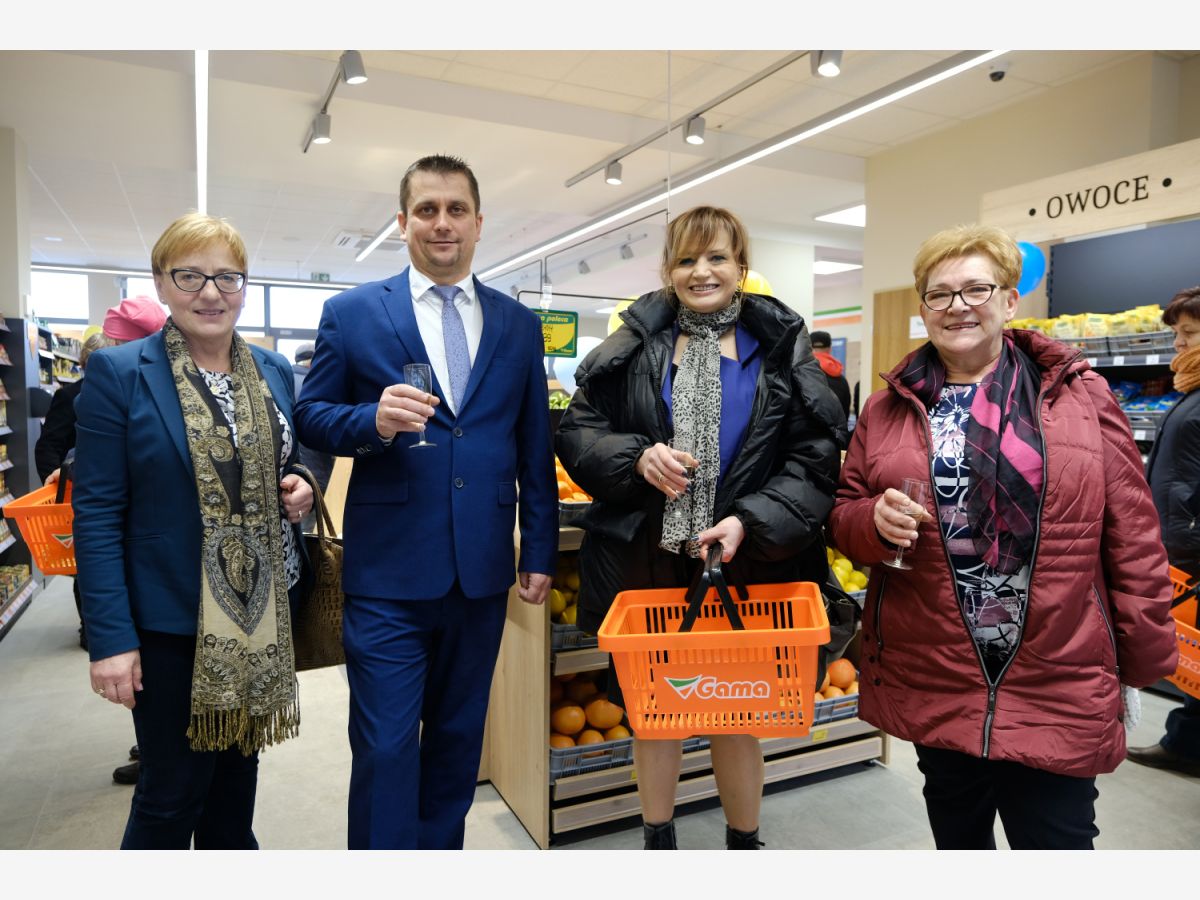 Uroczystego przecięcia wstęgi dokonali V-ce Prezes Społem Zakopane Paweł Sołtys, Prezes Zarządu PSS Nowy Targ Irena Rosowska, Kierownik sklepu Gama w Nowym Targu Daniel Babicz i Z-ca Kierownika sklepu Gama w Nowym Targu Agnieszka Nawara.