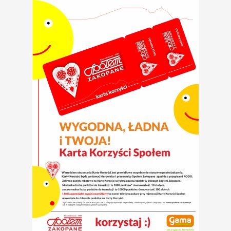 Zebrane punkty rabatowe na Karcie Korzyści są formą upustu/zapłaty w sklepach Społem Zakopane.
