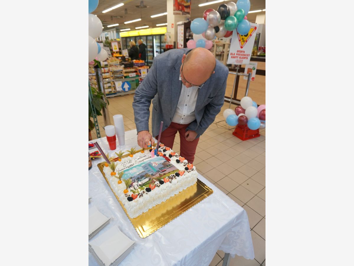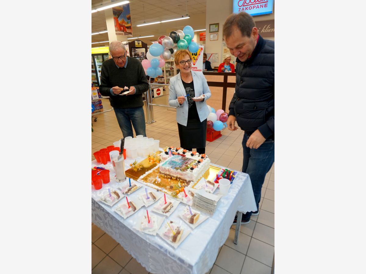 Dokładnie o 12:00, w samo południe, częstowaliśmy tortem, a od samego rana witaliśmy promocjami w Szymonku.