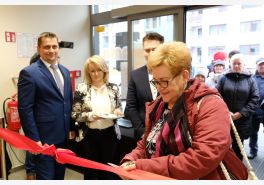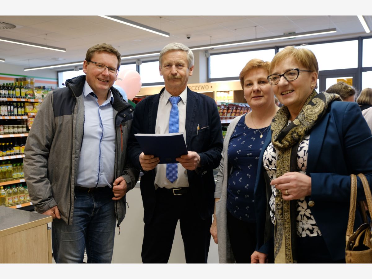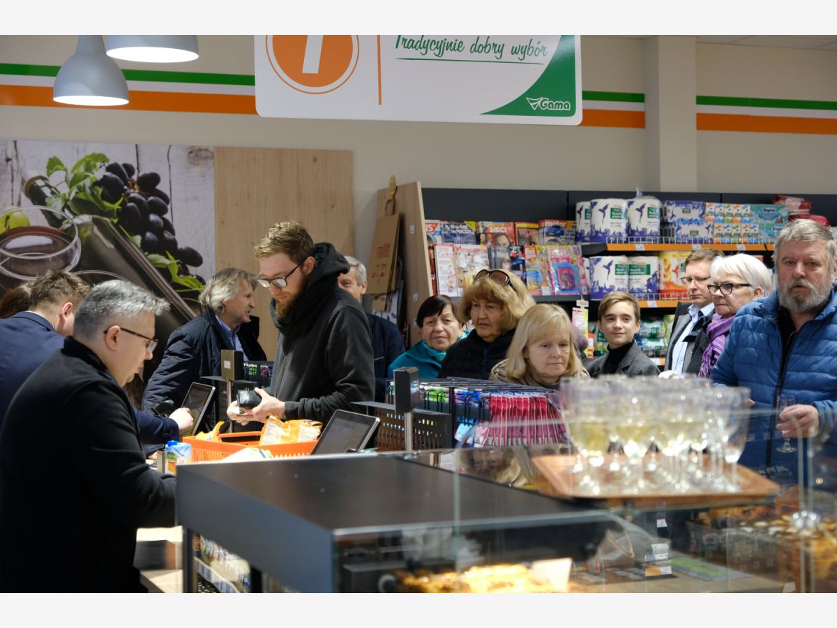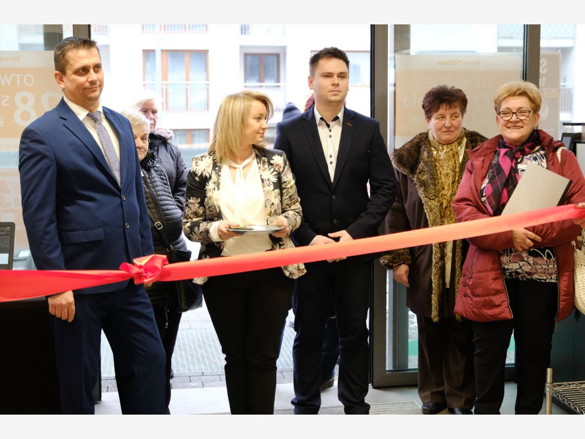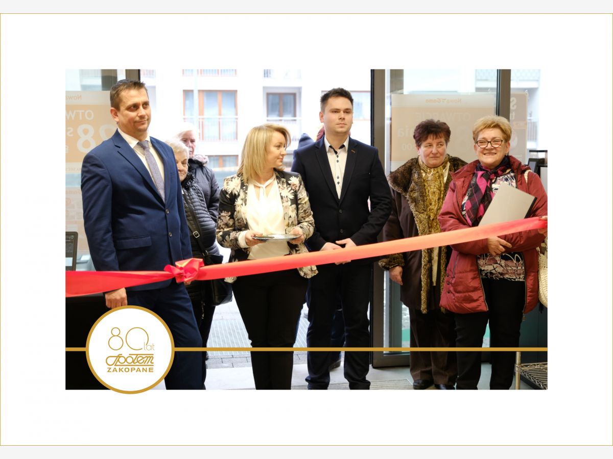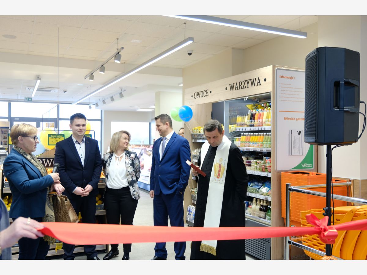 Uroczystego przecięcia wstęgi dokonali V-ce Prezes Społem Zakopane Paweł Sołtys, Prezes Zarządu PSS Nowy Targ Irena Rosowska, Kierownik sklepu Gama w Nowym Targu Daniel Babicz i Z-ca Kierownika sklepu Gama w Nowym Targu Agnieszka Nawara.